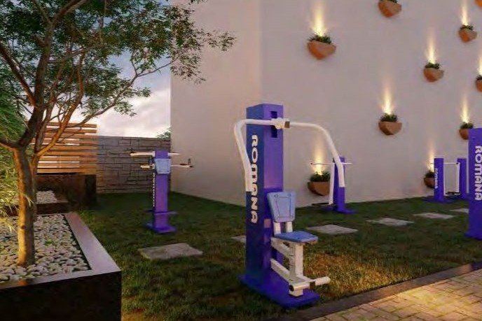 Sun-filled open-air gymnasium for refreshing outdoor workout sessions.