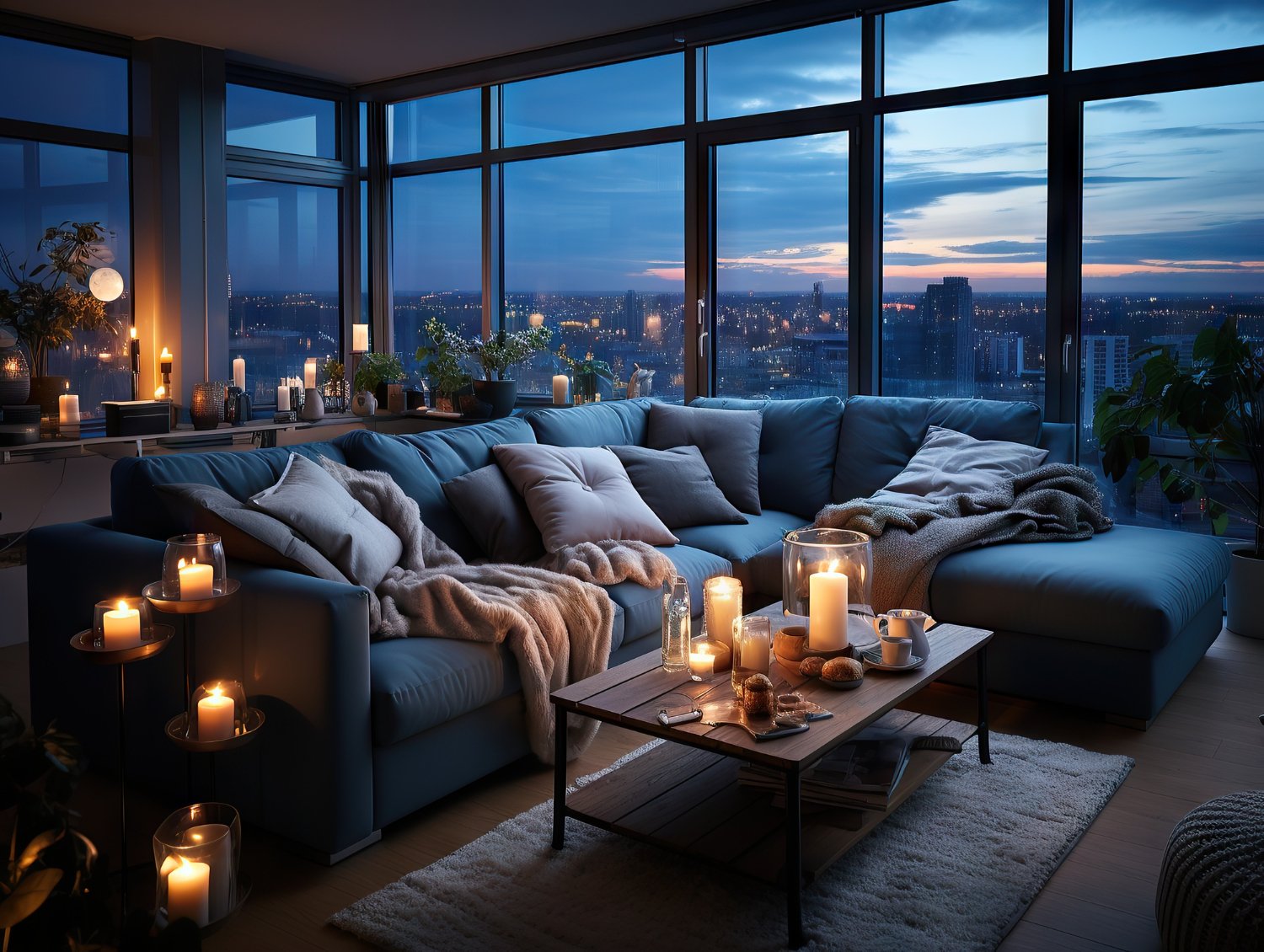 Elegant seating area with sophisticated interiors and ambient lighting.
